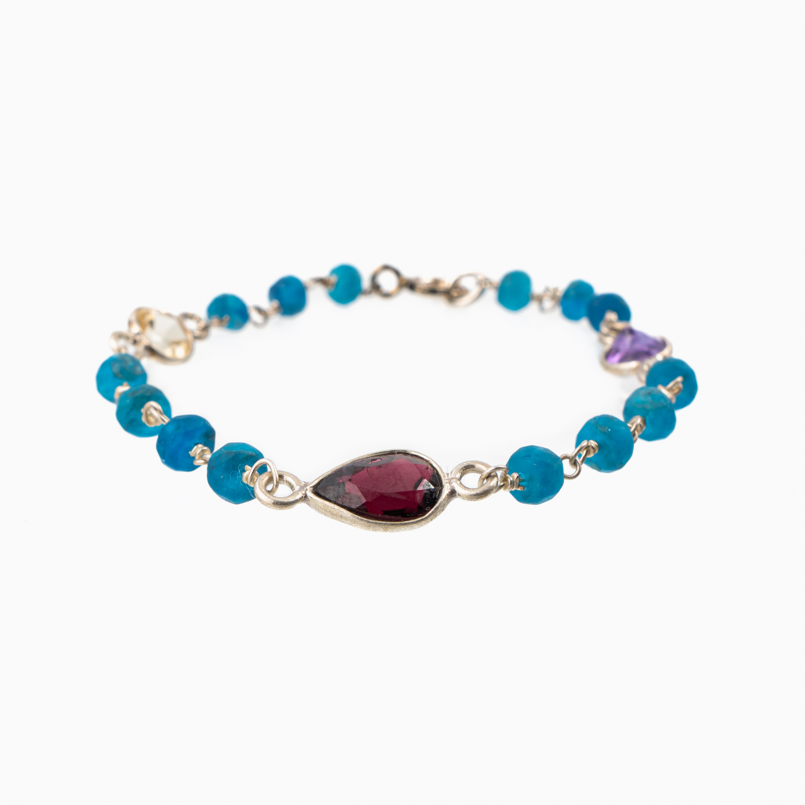 Coletul dv. va cuprinde pe langa produsul Bratara argint pietre semipretioase apatit discuri fatetate 4 mm si conectori forma neregulata din Citrin, granat, ametist lungime 16-20 cm urmatoarele: