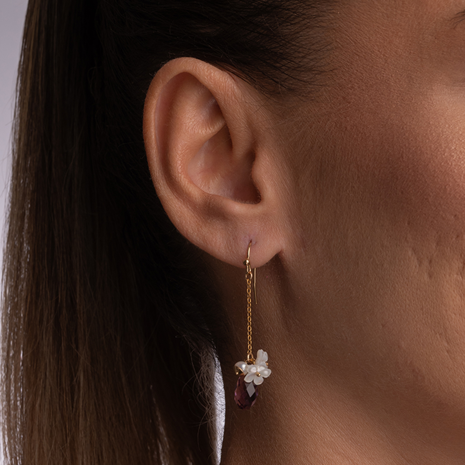 Coletul dv. va cuprinde pe langa produsul Cercei cristale Austria ametist brioleta 10 mm perla cultura flori sidef Gold filled 1/20 14K urmatoarele: