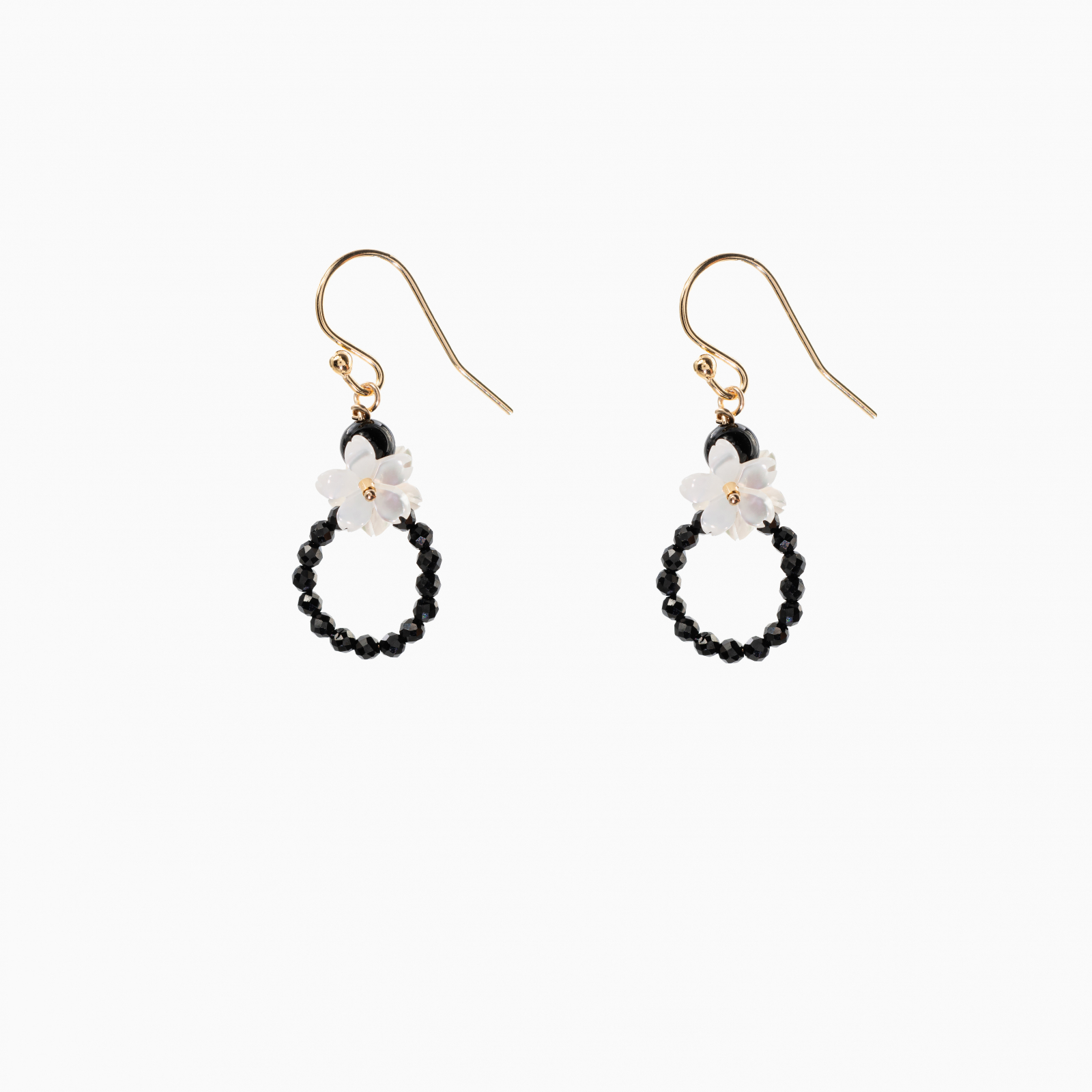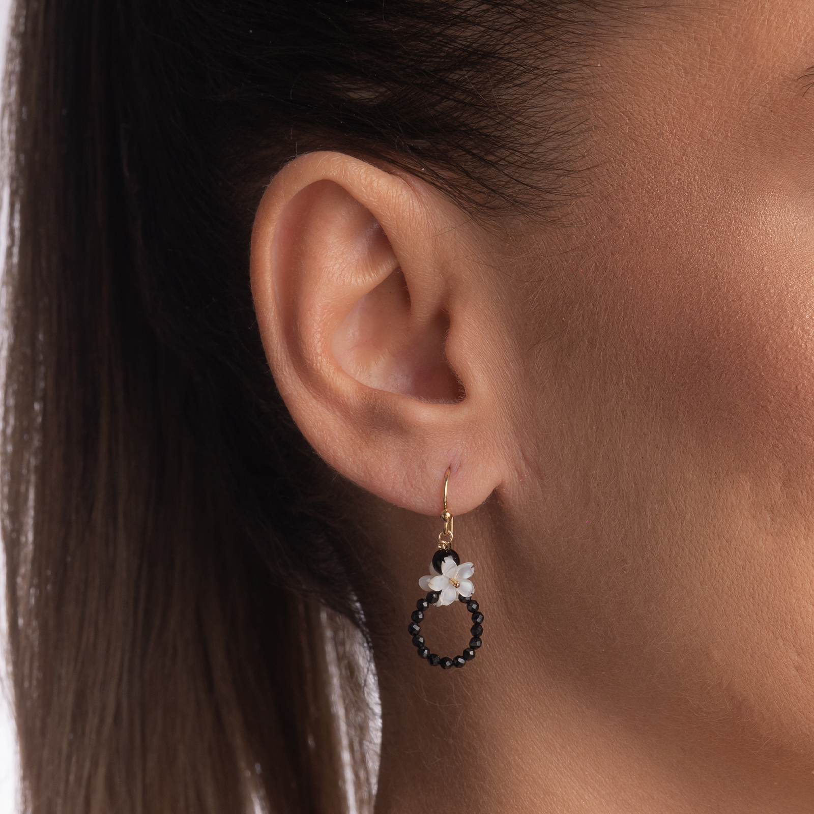 Coletul dv. va cuprinde pe langa produsul Cercei Gold filled 1/20 14K pietre semipretioase spinel negru 2 mm onix 4 mm flori din sidef lungime 3 cm urmatoarele: