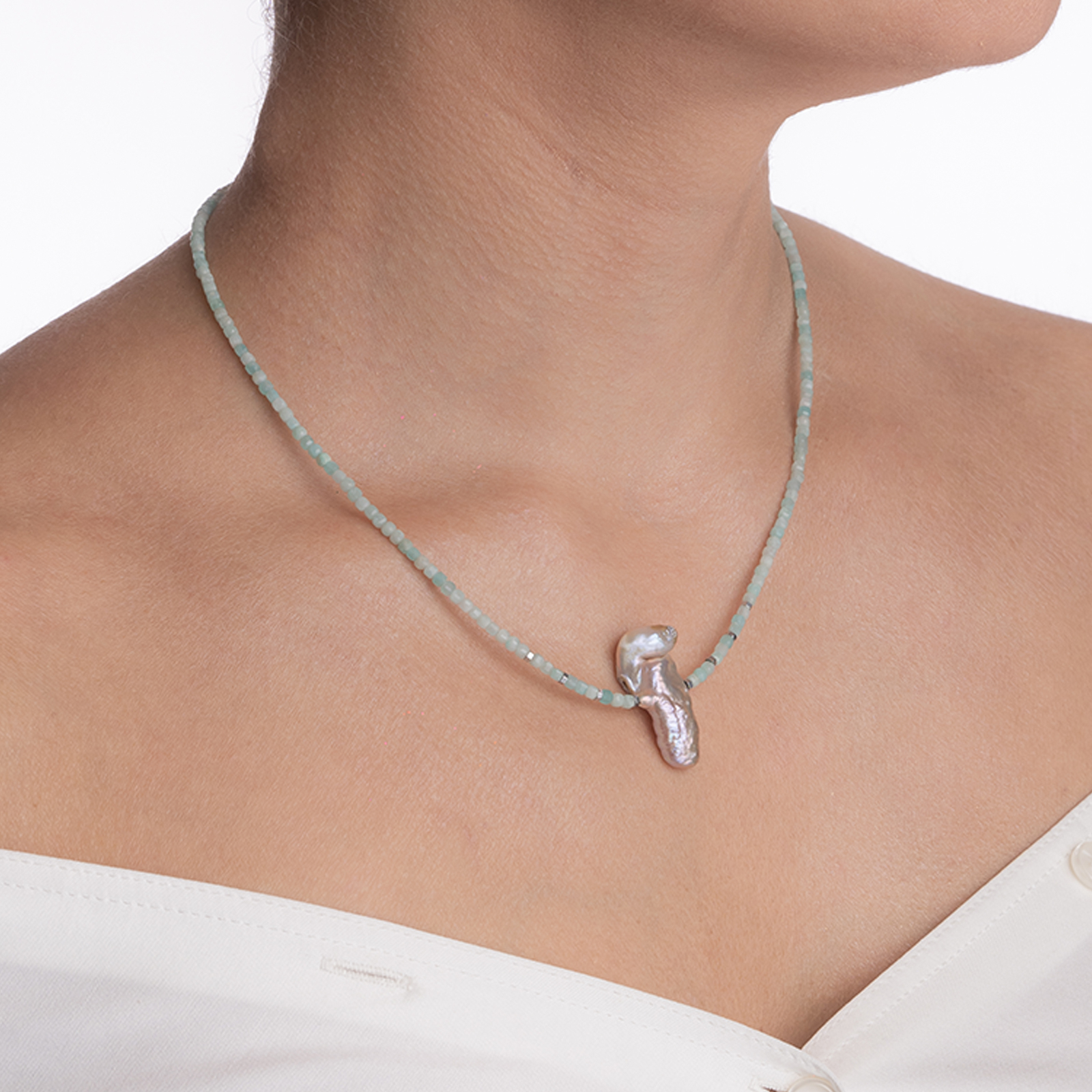 Coletul dv. va cuprinde pe langa produsul Colier argint pietre semipretioase amazonit cubulete de 3 mm , hematit si scoica naturala lungime 43 cm urmatoarele:
