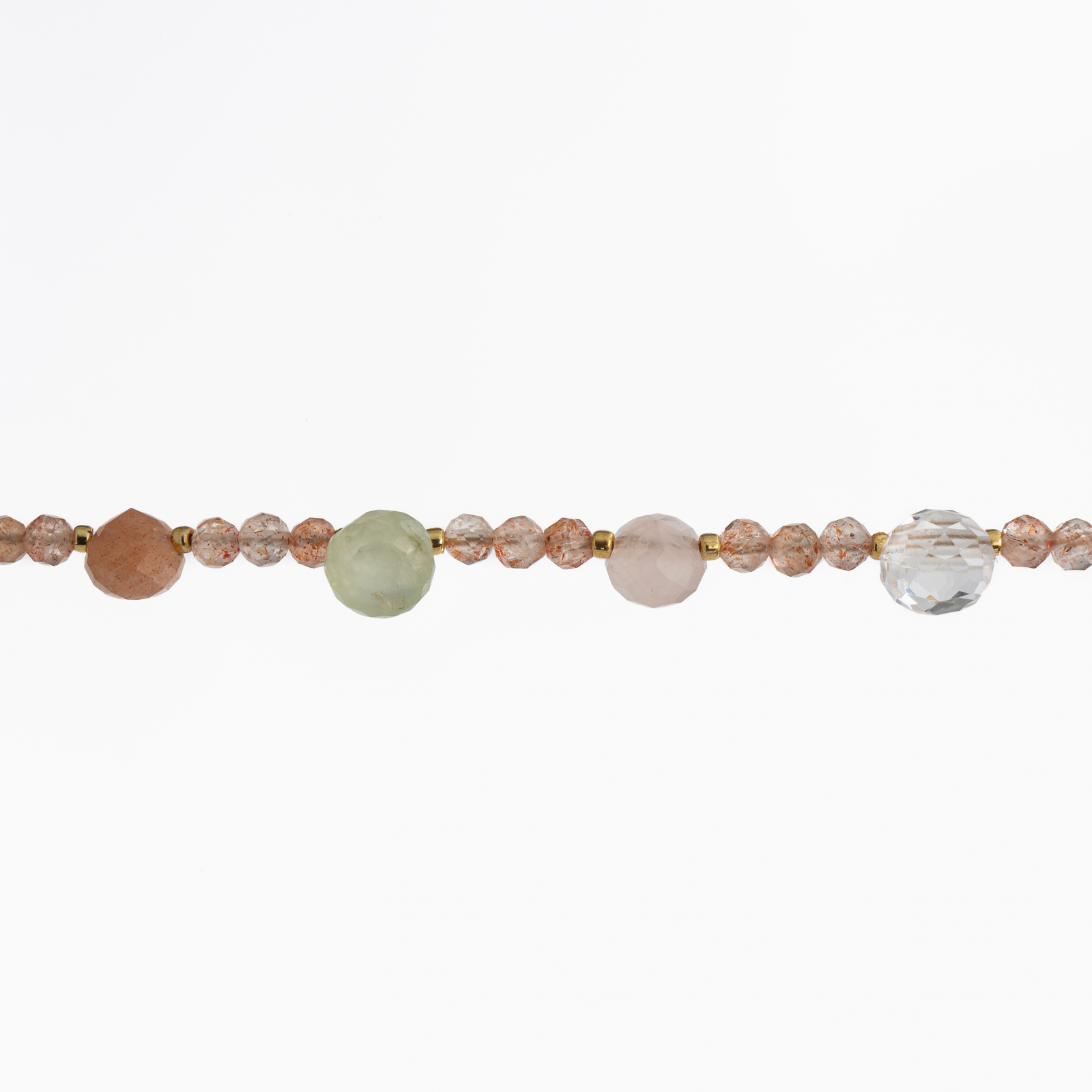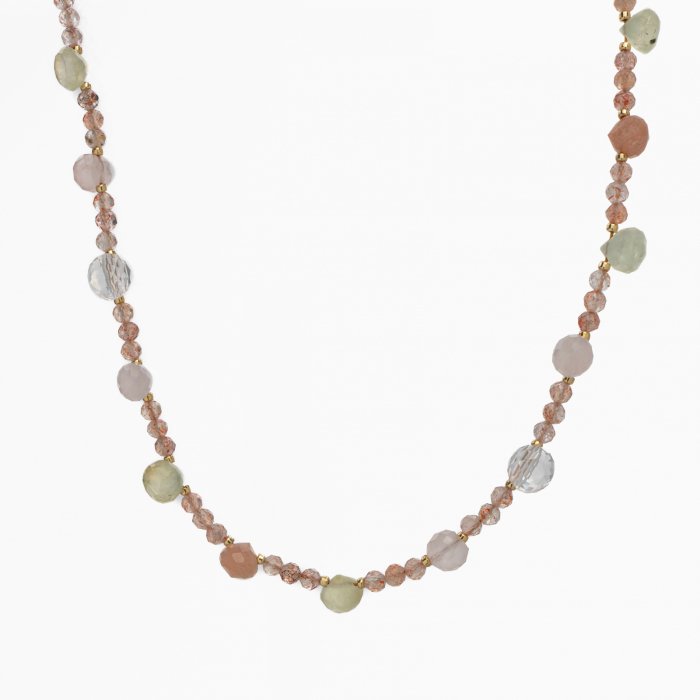 Coletul dv. va cuprinde pe langa produsul Colier argint pietre semipretioase microfatetate piatra soarelui de 3.5 mm, briolete din cuart roz, Cristal de stanca, prehnit, piatra lunii lungime 36 cm urmatoarele: