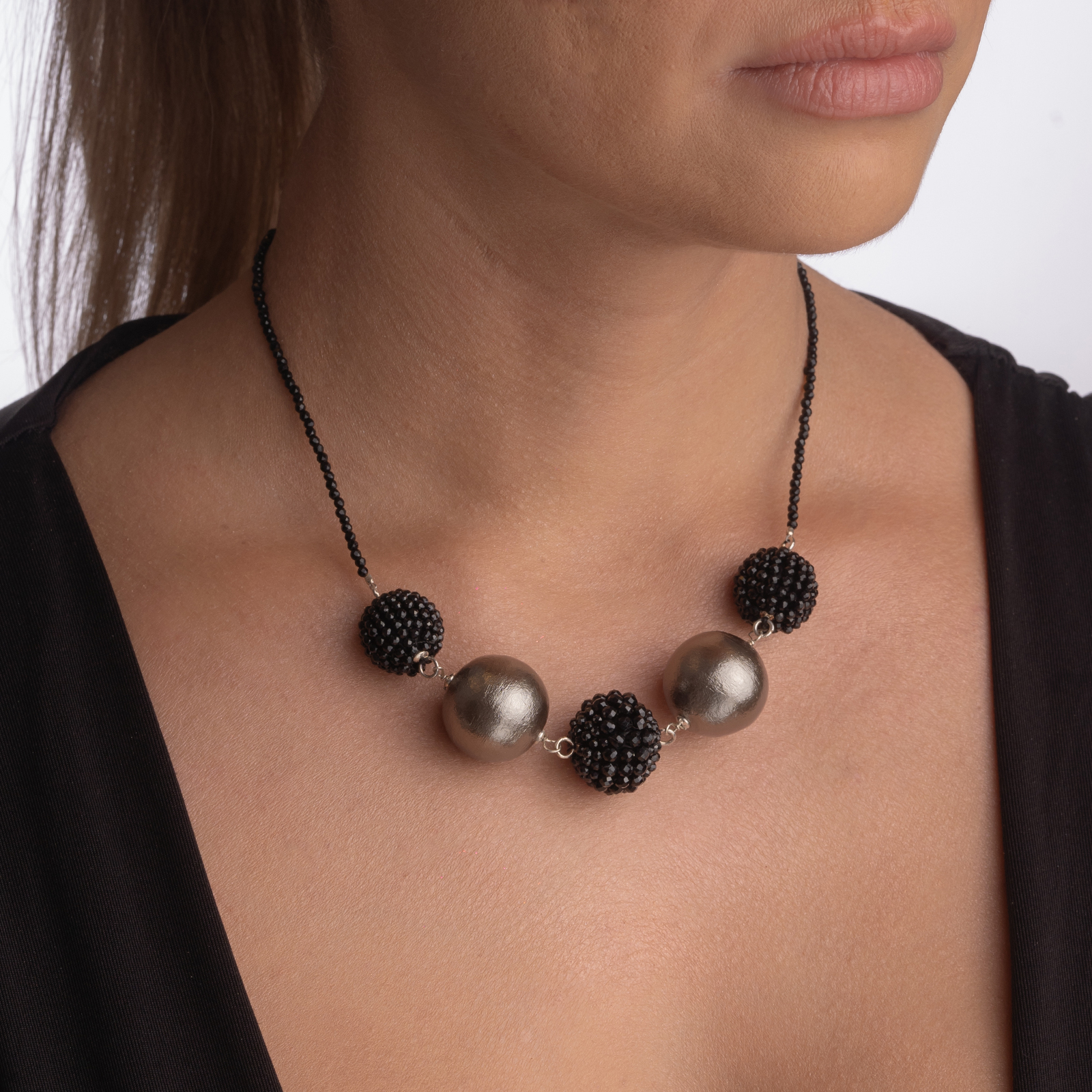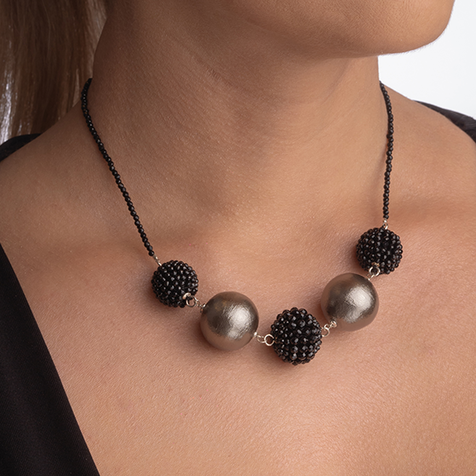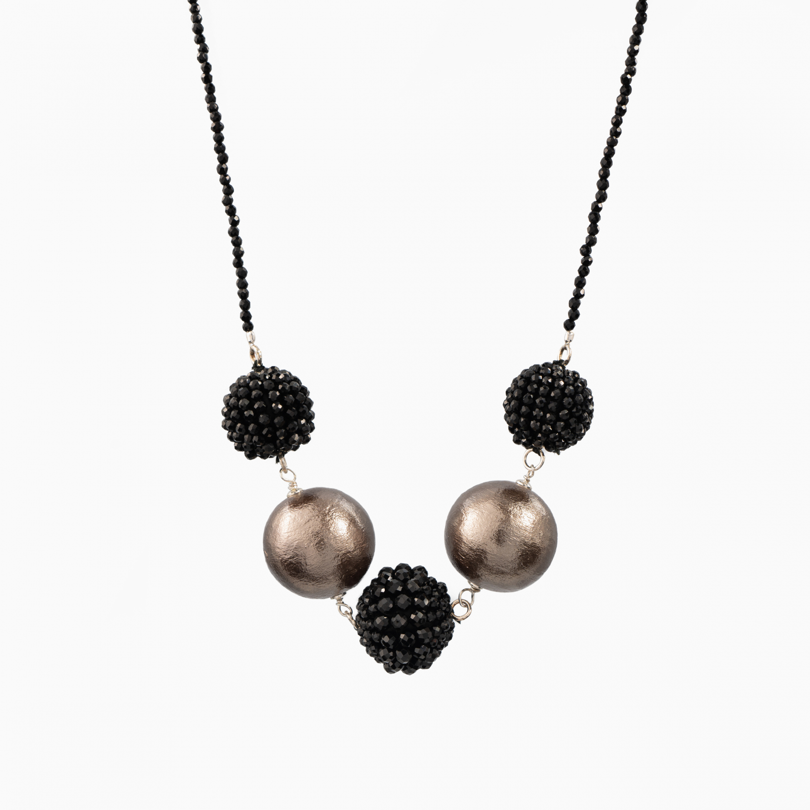 Coletul dv. va cuprinde pe langa produsul Colier argint pietre semipretioase spinel negru bile de 14 si 16 mm bila bronz tip perla Japonia 20 mm urmatoarele: