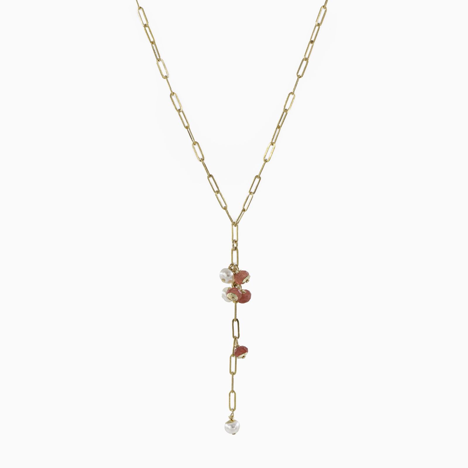 Colier perle cultura 4 mm rubin 4 mm lant paperclip Gold filled 1/20 14K