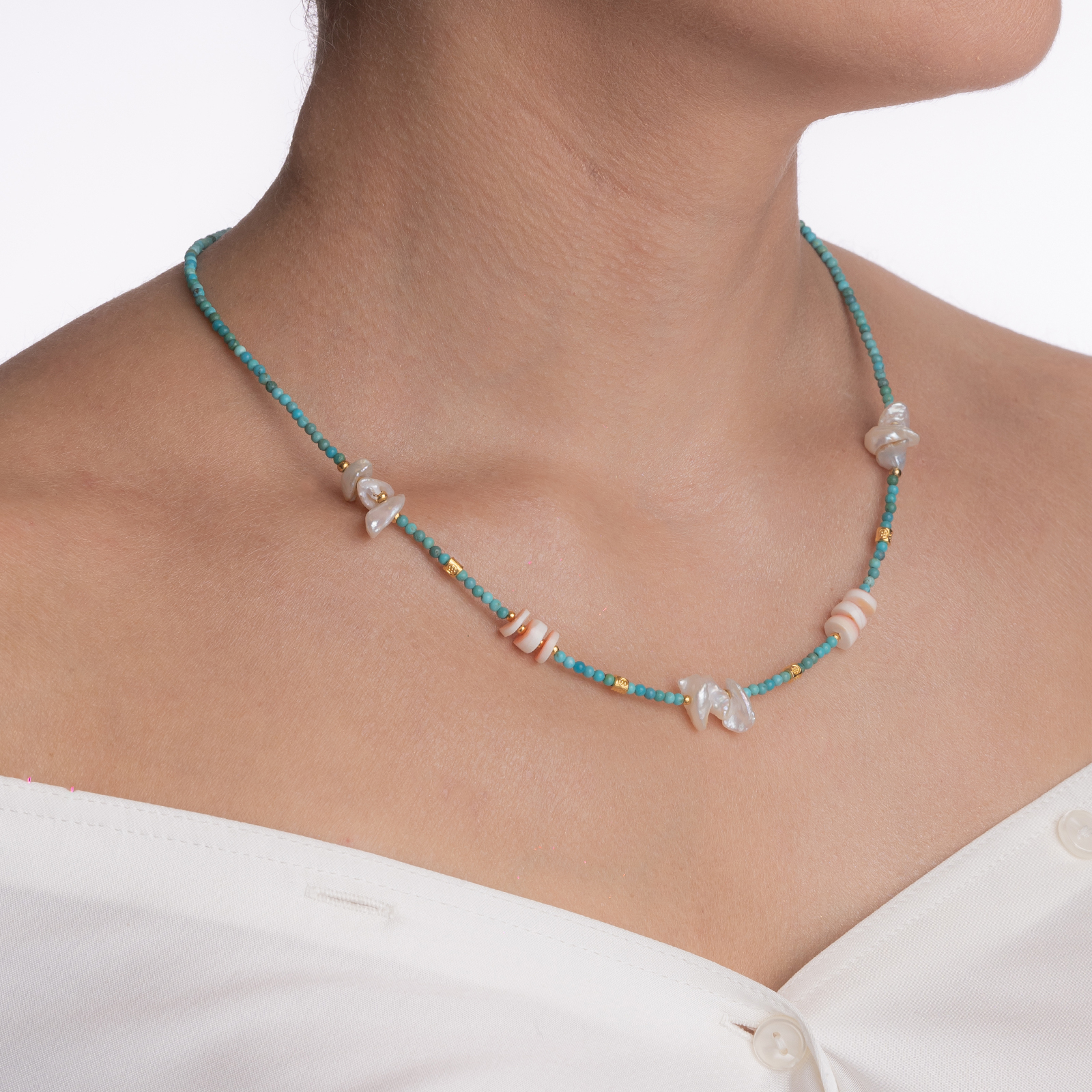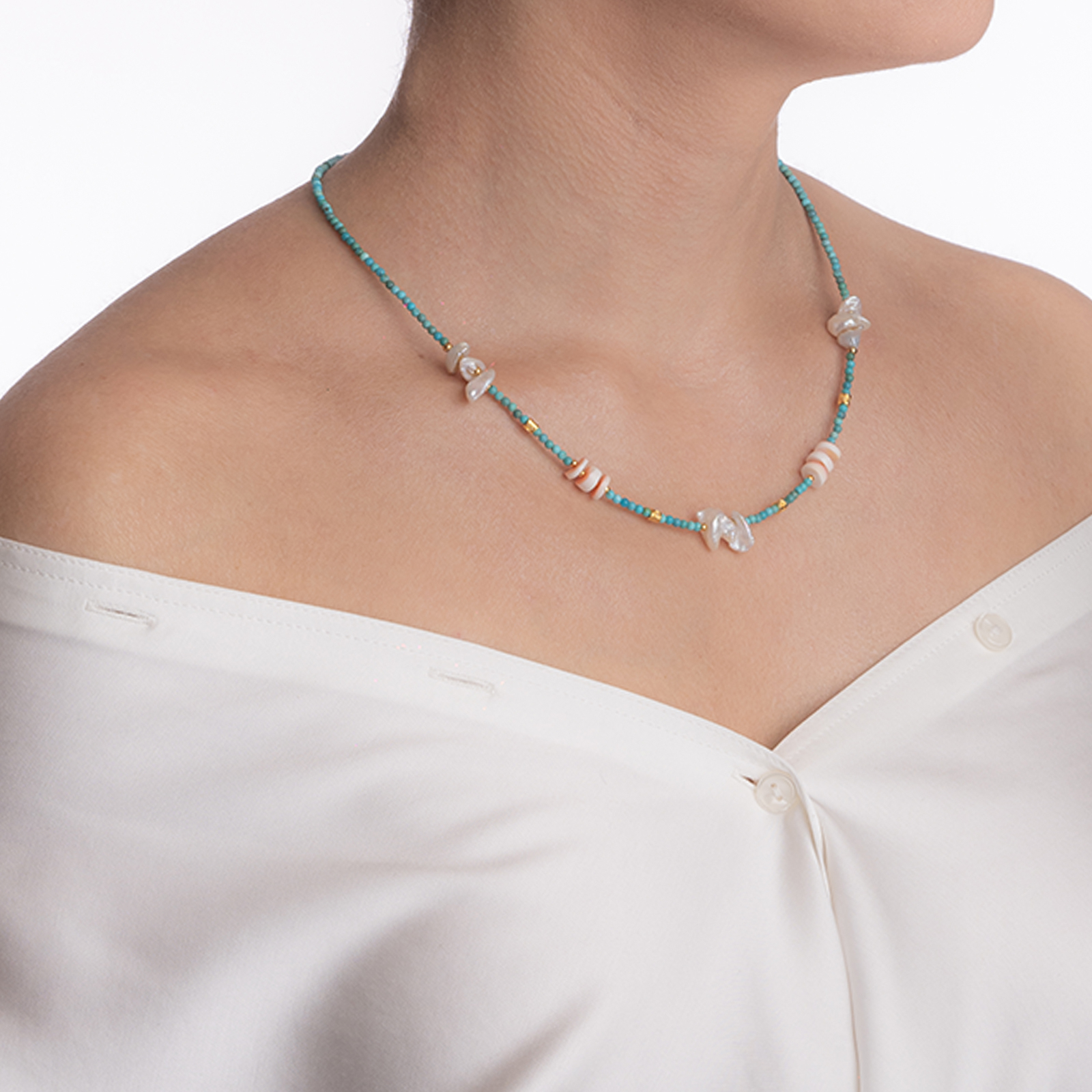 Coletul dv. va cuprinde pe langa produsul Colier pietre semipretioase turcuaz 2.5 mm, scoica si coral rosu si alb lungime 41 cm urmatoarele: