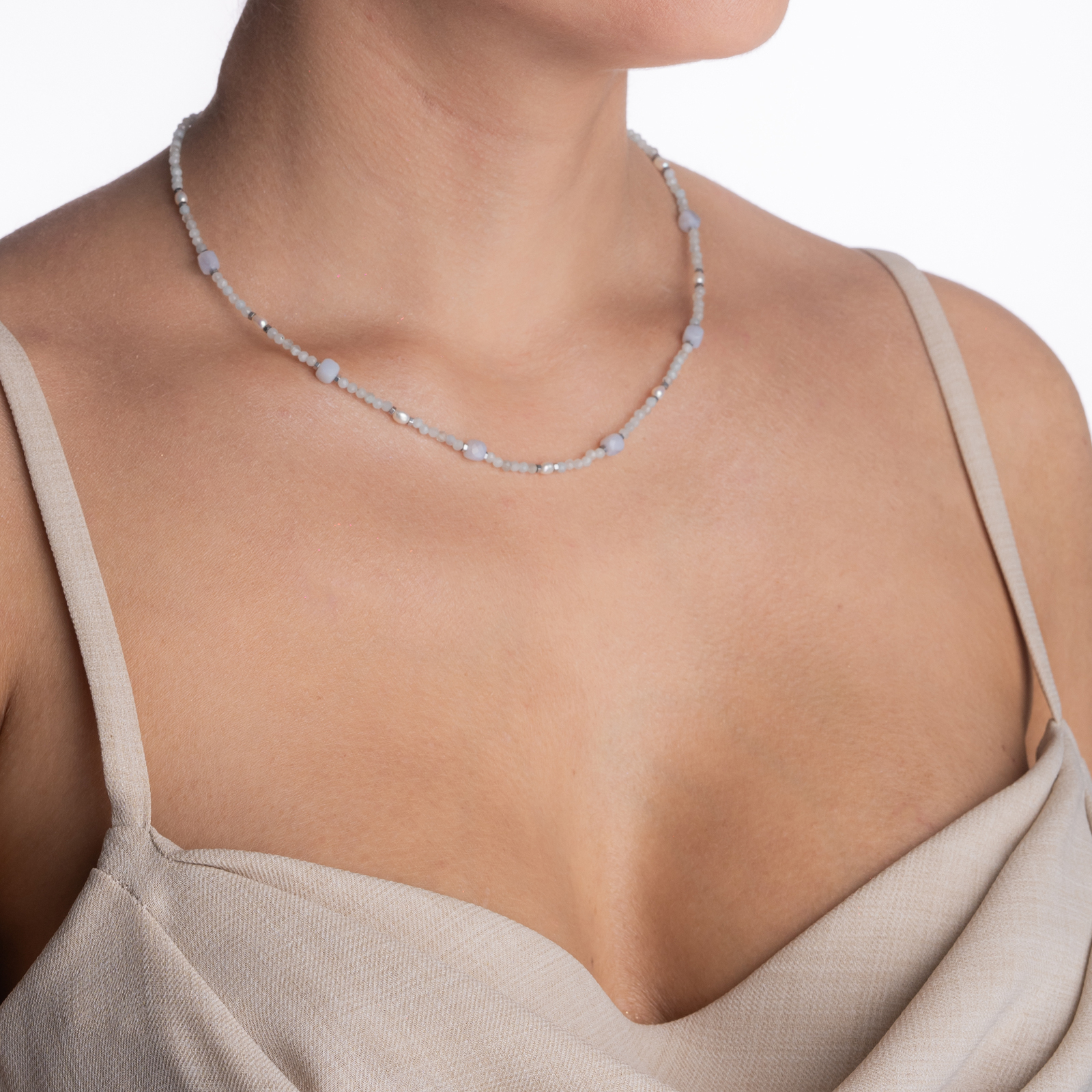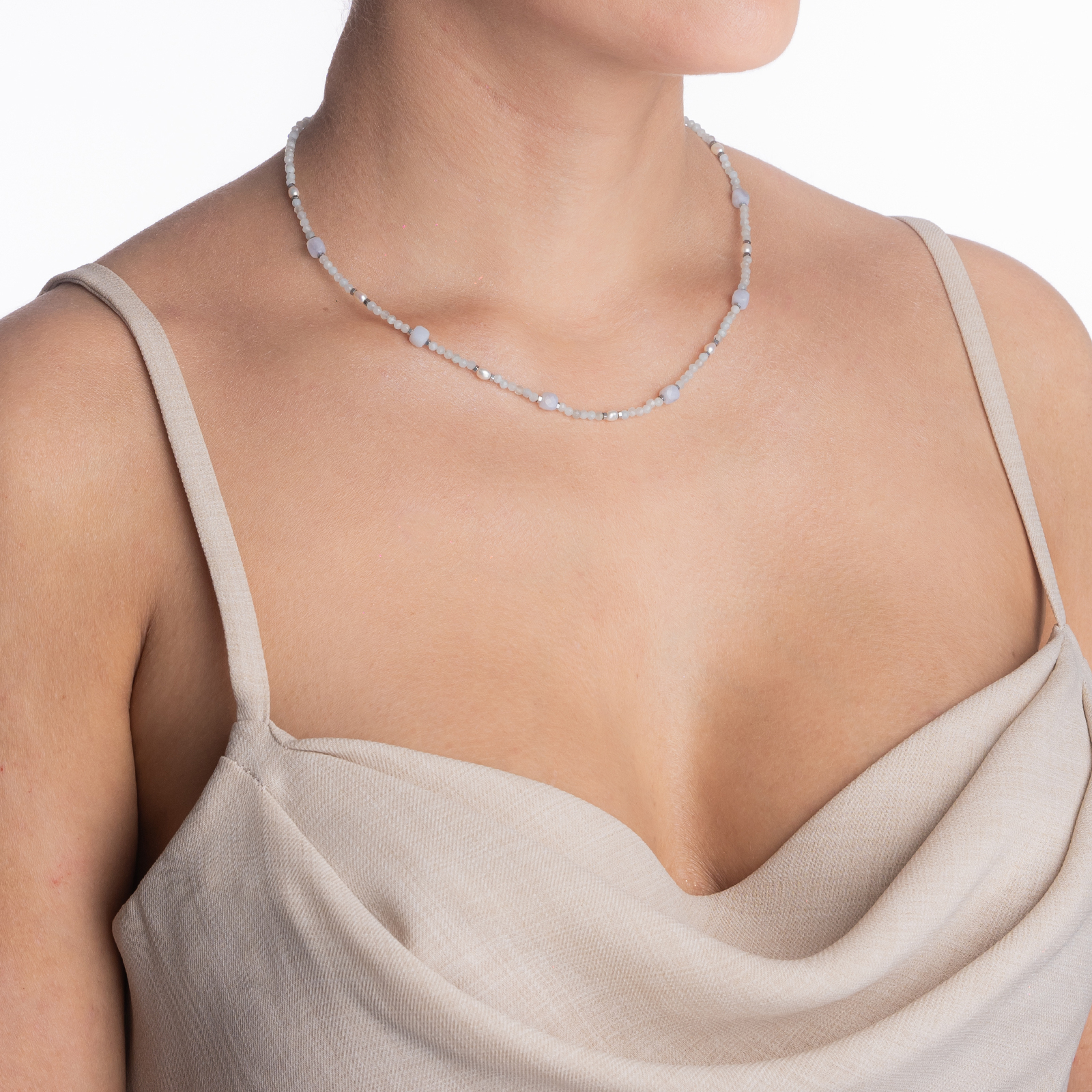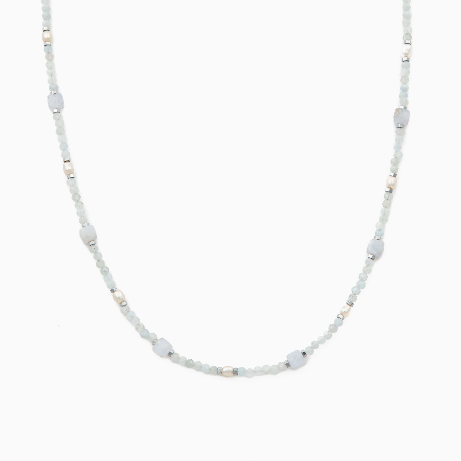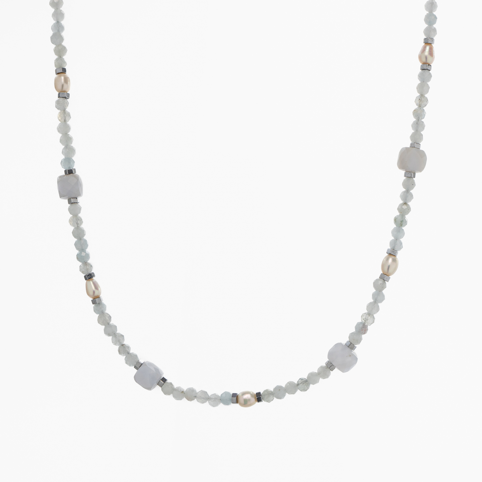 Coletul dv. va cuprinde pe langa produsul Colier argint pietre semipretioase acvamarin microfatetat 2 mm cubulete din calcedonie, perlute de cultura si accente din hematit lungime 42 cm urmatoarele: