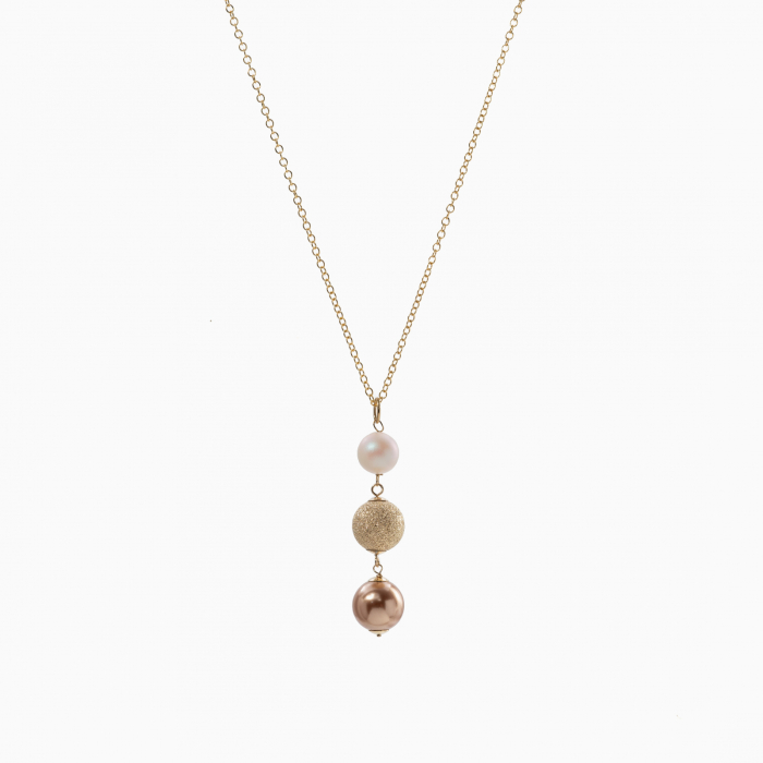 Coletul dv. va cuprinde pe langa produsul Colier Gold filled 1/20 14K 2 margele tip perla Austria pearlescent white si gold piesa centrala aur filat urmatoarele: