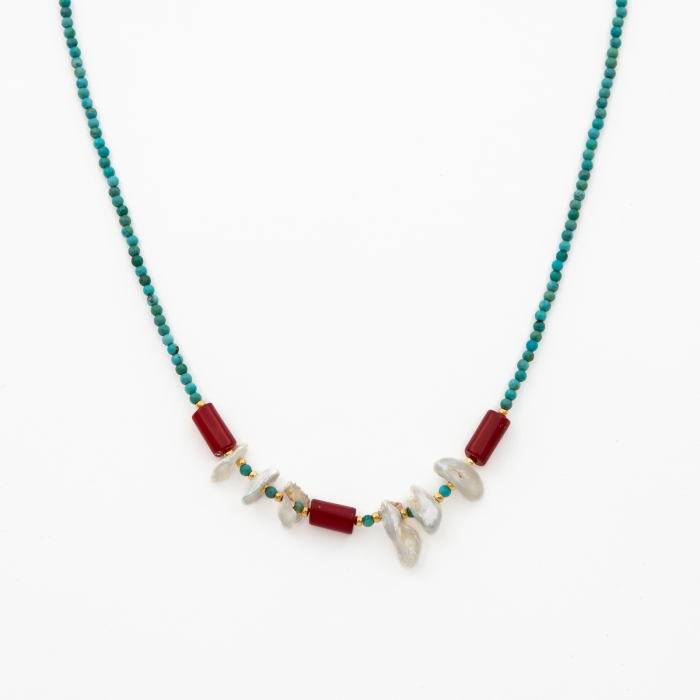 Coletul dv. va cuprinde pe langa produsul Colier pietre semipretioase turcuaz 2 mm, scoica si coral rosu cu accente aurii lungime 40 cm urmatoarele:
