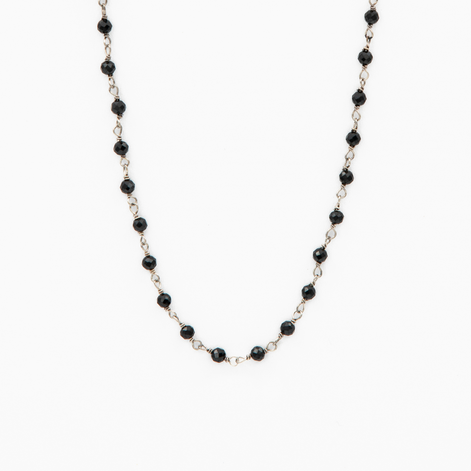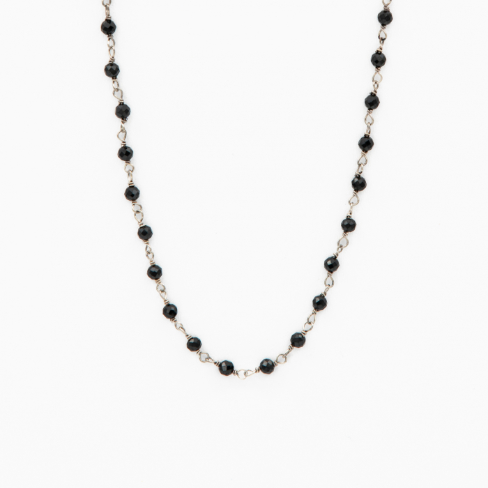 Silver necklace with micro-faceted black spinel 3 mm - length 42 cm