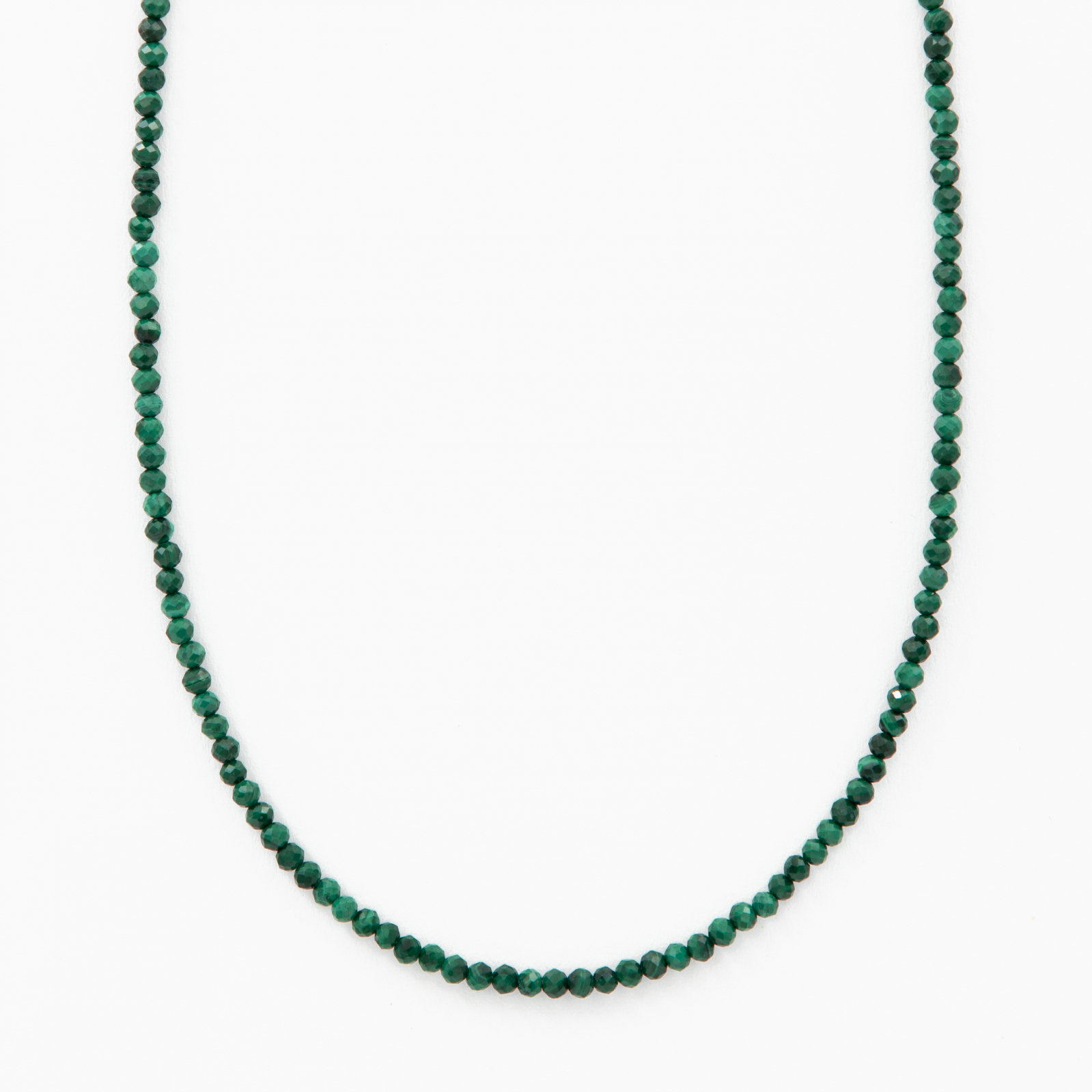 Silver necklace with micro-faceted malachite 2.5 mm - length 42 cm